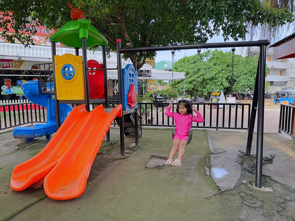 On our way to the beach, we passed a small playground. Audrey didn’t want to skip it. She went straight to the swings and slides. We let her play for a bit before heading down. Along the path, there are also little stores selling souvenirs.