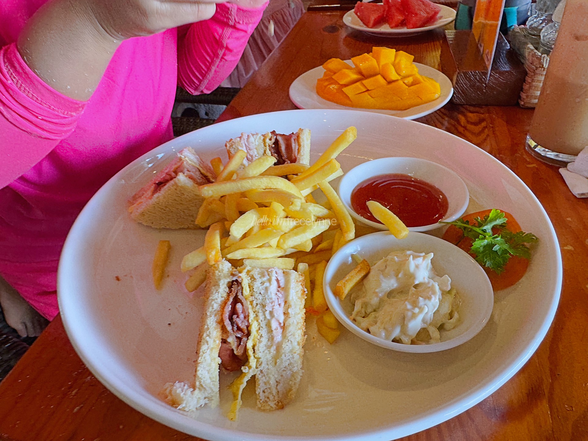 We had breakfast at Pyramid Beach Resort. They offer both Filipino and American breakfast options. Audrey ordered a clubhouse sandwich. Dee and I shared plates with bacon, sausage, longanisa, and corned beef. The food was good, and the setting by the beach made it even better.