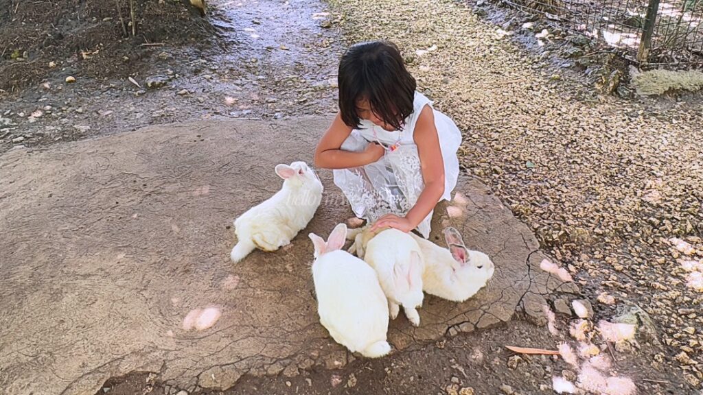 What struck me first was how alive the park felt. Peacocks roamed freely around the grounds. There were rabbits, a bearcat, parrots, chickens, and fish. These animals that Audrey immediately gravitated toward. It wasn’t a zoo setup. Everything felt open and natural, which I appreciated.