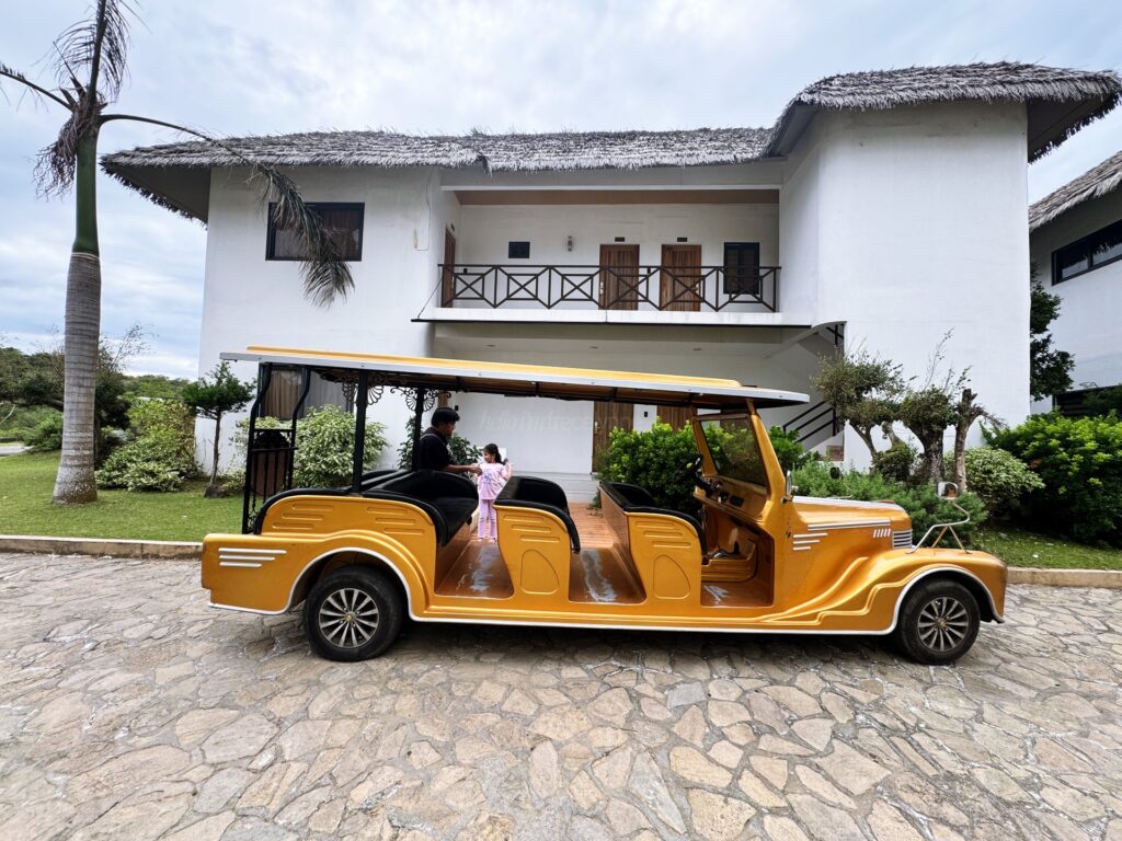 After check-in, an electric shuttle train took us to our room. Staff helped with our luggage, which I appreciated.