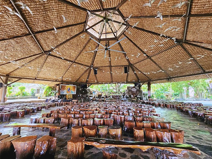 This is one of the most architecturally singular beautiful churches in Las Piñas, and honestly, in all of Metro Manila. Mary Immaculate Parish, commonly called the Nature Church, was designed by National Artist Francisco Mañosa and inaugurated on December 8, 1987. The entire structure is a celebration of Filipino organic architecture. The roof is covered with a woven network of 40,000 anahaw leaves, the largest anahaw-covered roof in the Philippines. The altar rests on two madre cacao driftwood pedestals over a coral marble slab. The seats are made from fallen logs. Beams and pillars come from 50-year-old mango trees. A rock garden sits below the altar, complete with wild bougainvillea, fern varieties, and a man-made waterfall that collects into a lagoon decorated with water lilies. After a fire on New Year’s Day 2007, the church was rebuilt with fire-resistant technology while keeping Mañosa’s original vision intact. It was rededicated on September 8, 2007. Walking into this church feels genuinely different from any other parish on this list, and that’s exactly the point.